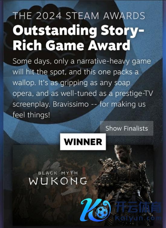 近日,Steam大奖受奖庆典落下帷幕,《黑传说:悟空》荣膺年度最好游戏、纵使手残仍大爱和了得剧情游戏三项大奖,实至名归。连络词,《黑传说》获了得剧情游戏奖一事引起了业界方式。 据外媒报说念,《黑传说》的获奖令东说念主大感只怕。尽管很多东说念主觉得该作在剧情方面进展欠佳,但其仍打败了《肃静祸运》、《对马岛之魂》和《最终幻念念 16》等热点游戏。甚而有网友直言他们从未听过对于《黑传说》故事的探讨。 值得一提的是,《原野大镖客》因音轨翻新性而取得最好原声息轨奖,而《艾尔登法环》因其付出了巨大死力赢得