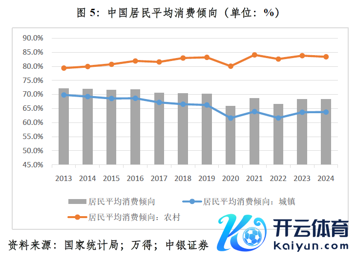 城镇住户浮滥支拨占比下落是因为城镇住户平均浮滥倾向回落,而农村住户平均浮滥倾向稳中趋升。2020~2024年,寰球住户平均浮滥倾向算术平均值为67.5%,较2015~2019年均值低了3.3个百分点。其中,城镇住户平均浮滥倾向均值为62.9%,低了4.5个百分点;农村住户平均浮滥倾向均值为82.8%,卓越0.7个百分点(见图5)。